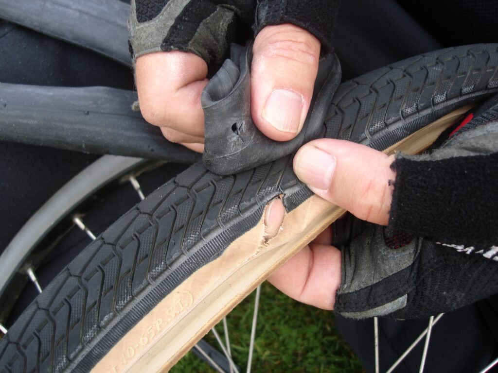 We had just passed through Pickmere and turned into Frog Lane. We had scarcely gone a yard when BANG! With open jaws a lion sprang! Actually, it didn’t, but the fettling of which I had been so proud not two days ago was undone in an instant as the brand new Panaracer Pasela 26″*1.75″ tyre, being of a dangerous sort, exploded with a loud report [that’s enough Hilaire Belloc references. – Ed.]