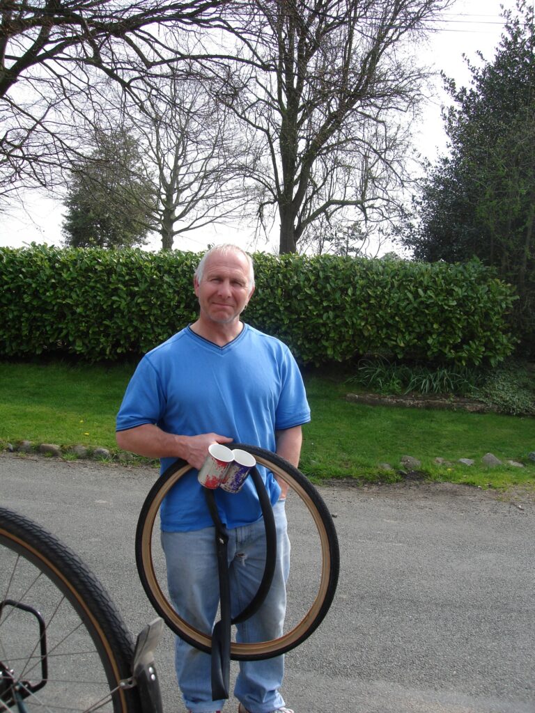 The day began with a surprise visit from Tubbycyclist, bearer of glad tidings and a Schwalbe Marathon Plus 26″ * 1.75″ tyre. Kevin, for that is his proper name, came in for a cup of tea and a chat. In the course of conversation it transpired that he was originally from Southend and attended the Sacred Heart School. I teach there for one hour a week. Well well well!