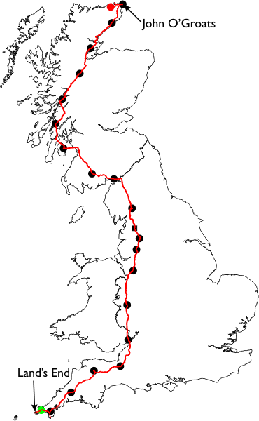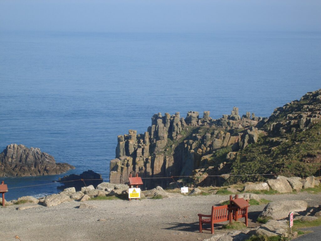 The train arrived to time and after a suitable amount of faffing and photography we were on our way. The weather was glorious: hardly a cloud and very little wind. We found the road to Land’s End with no difficulty, but everything was hillier than I imagined. After half an hour, our average speed was only 6.4mph and I was beginning to worry greatly about the entire timetable. This had picked up a little by the time we reached Land’s End.