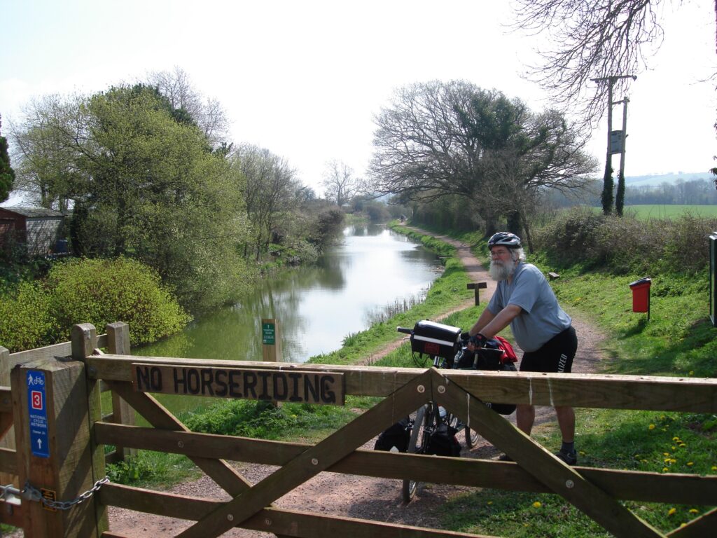 Apart from the early walk up the steep hill from Chulmleigh, we had a very steady day’s cycling. Navigation was straightforward as the first 19 miles, into Tiverton, were along a B road, almost all easterly so that the outside of my right thigh became sunburnt. We also found the canal towpath with ease, but Sustrans, as ever, came up trumps: the gates were locked and it was impossible to get a fully laden tandem through the labyrinth barrier. After a little exploration and asking passers-by, we found the canal basin and we were away It was not fast cycling, but at least we were free from hills for 10 miles or more. The canal was interesting too: at one point a large fish swirled on the surface, and later we saw a beautiful little perch.
