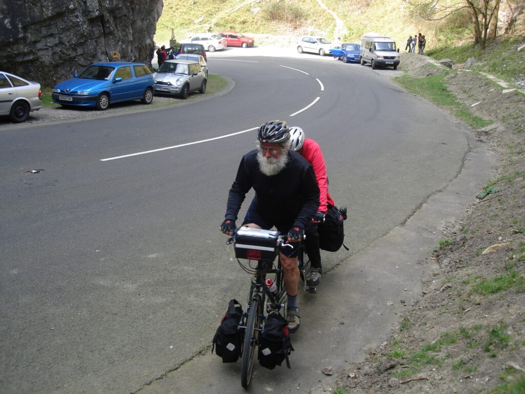 Cheddar Gorge was rather fun. There were lots of slow-moving cars, not enough parking spaces, and it’s really not the place to visit on an Easter Monday bank holiday. But here we were. We earned many admirers and one round of applause when we cycled up only getting off to push for about 200 yards and that at the steepest section.